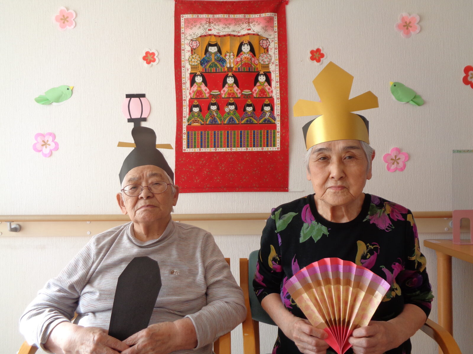 3月3日ひな祭りでみなさん交代でお内裏様、お雛様になって写真撮影をしました。お昼…